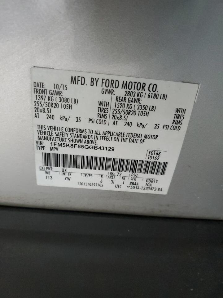 2016 FORD EXPLORER LIMITED 1FM5K8F85GGB43129