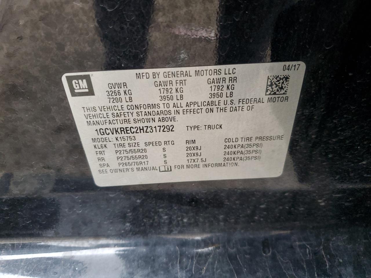 1GCVKREC2HZ317292 -