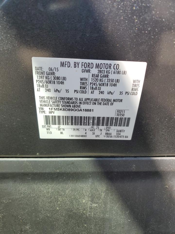 Машина оснащена 6 цилиндровым двигателем объемом 3.5 литров. Коробка передач - автомат. Тип топлива данной модели – бензин. Согласно фотоотчету с аукциона Copart пробег составляет 160 614 км. Номер кузова VIN - 1FM5K8D89GGA18881.