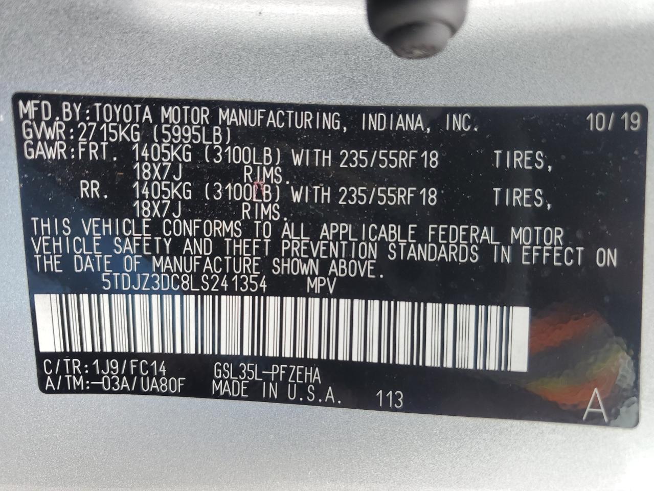 Машина оснащена 6 цилиндровым двигателем объемом 3.5 литров. Коробка передач - автомат. Тип топлива данной модели – бензин. Согласно фотоотчету с аукциона Copart пробег составляет 169 026 км. Номер кузова VIN - 5TDJZ3DC8LS241354.