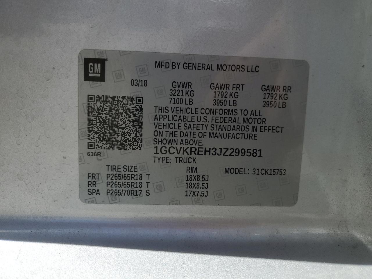 1GCVKREH3JZ299581 -