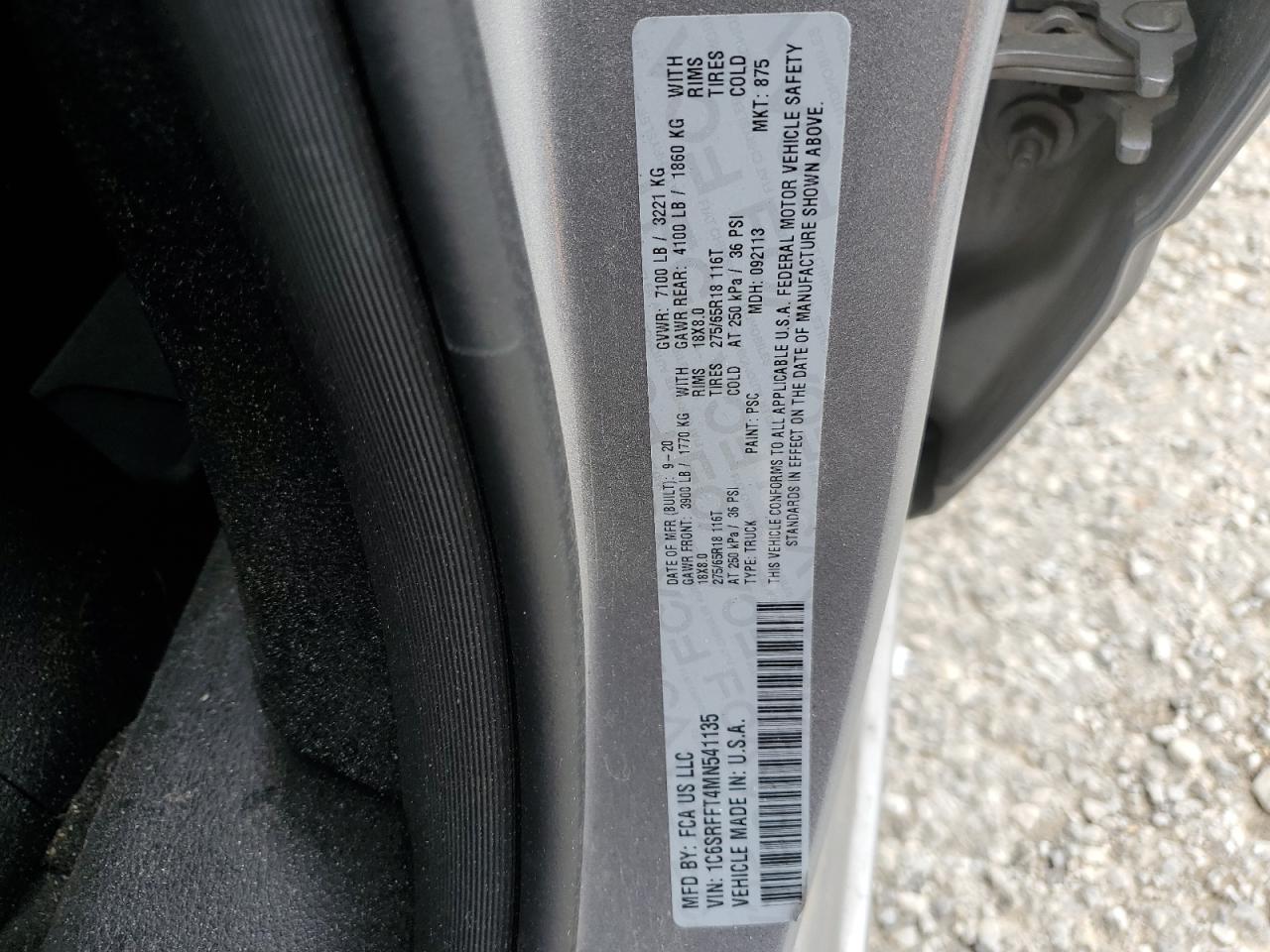 Машина оснащена 8 цилиндровым двигателем объемом 5.7 литров. Коробка передач - автомат. Тип топлива данной модели – бензин. Согласно фотоотчету с аукциона Copart пробег составляет 242 644 км. Номер кузова VIN - 1C6SRFFT4MN541135.