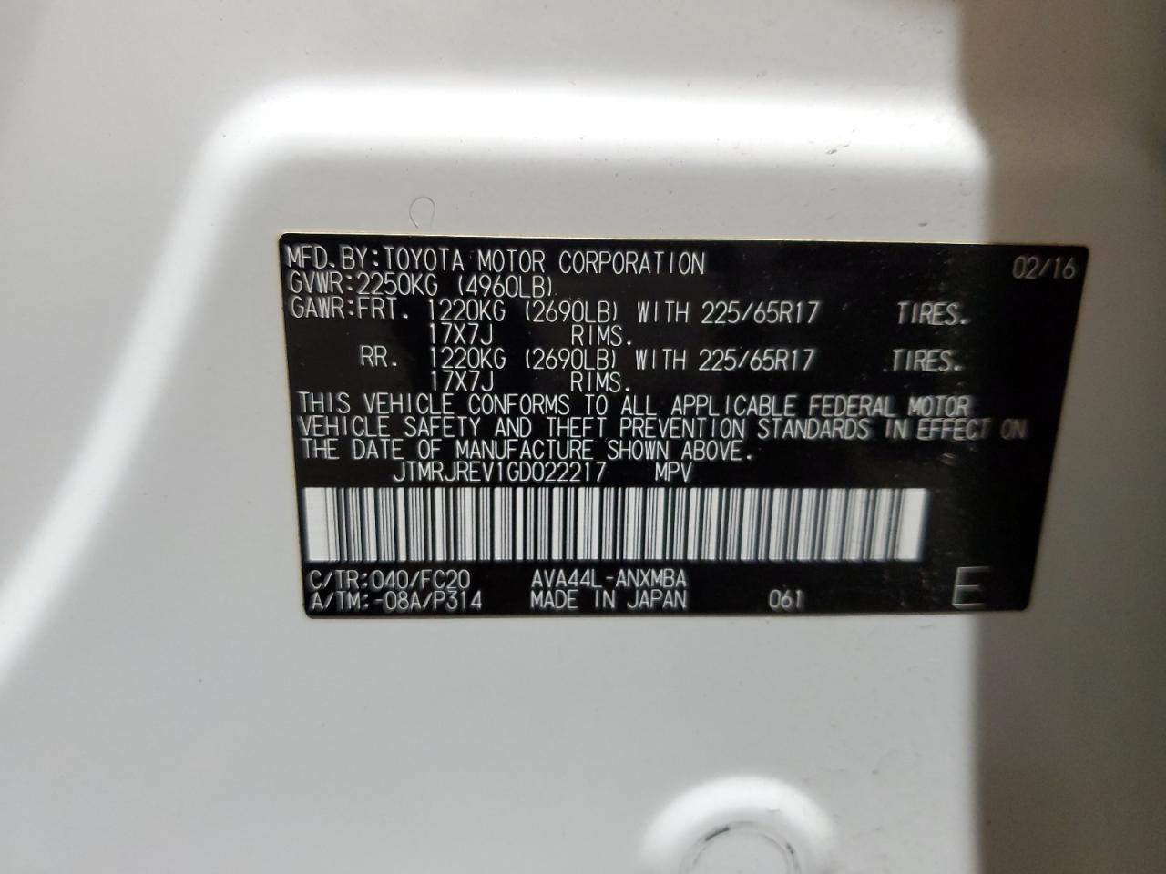 2016 TOYOTA RAV4 HV XLE JTMRJREV1GD022217