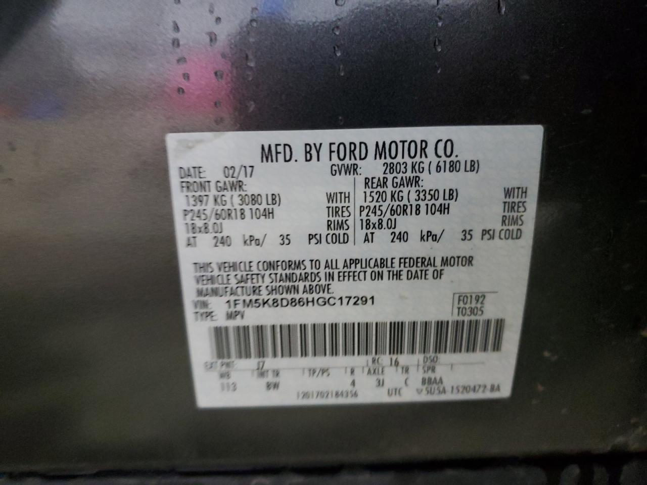 Машина оснащена 6 цилиндровым двигателем объемом 3.5 литров. Данный паркетник имеет полный привод. Коробка передач - автомат. Тип топлива данной модели – бензин. Согласно фотоотчету с аукциона Copart пробег составляет 211 238 км. Номер кузова VIN - 1FM5K8D86HGC17291.