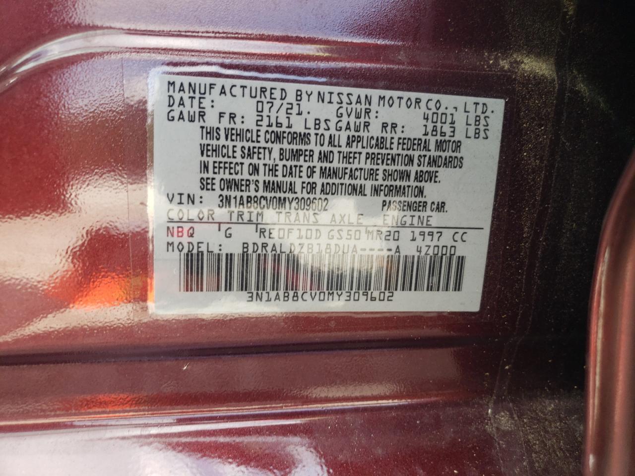 Машина оснащена 4 цилиндровым двигателем объемом 2.0 литров. Коробка передач - автомат. Тип топлива данной модели – бензин. Согласно фотоотчету с аукциона Copart пробег составляет 71 299 км. Номер кузова VIN - 3N1AB8CV0MY309602.