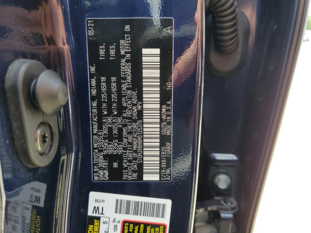 Машина оснащена 6 цилиндровым двигателем объемом 3.5 литров. Коробка передач - автомат. Тип топлива данной модели – бензин. Согласно фотоотчету с аукциона Copart пробег составляет 94 607 км. Номер кузова VIN - 5TDHZRBH6MS125376.