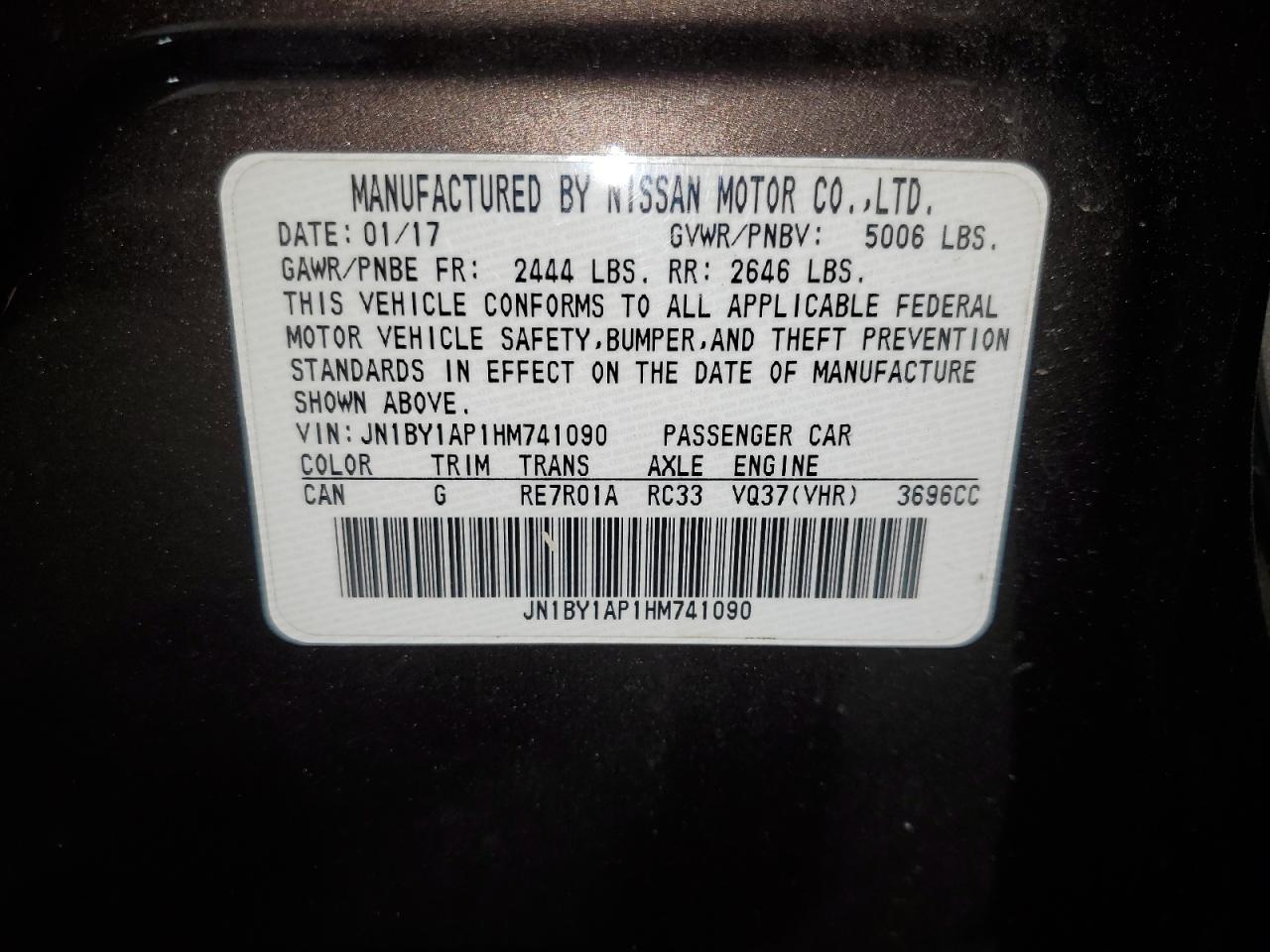 2017 INFINITI Q70 3.7 JN1BY1AP1HM741090