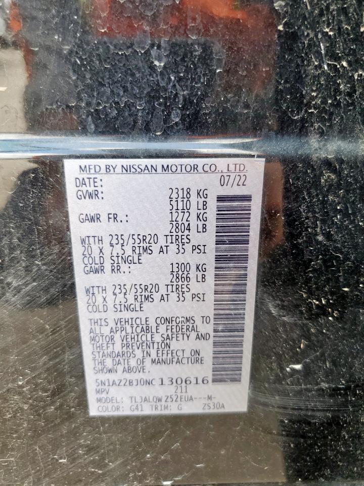 2022 NISSAN MURANO SV 5N1AZ2BJ0NC130616