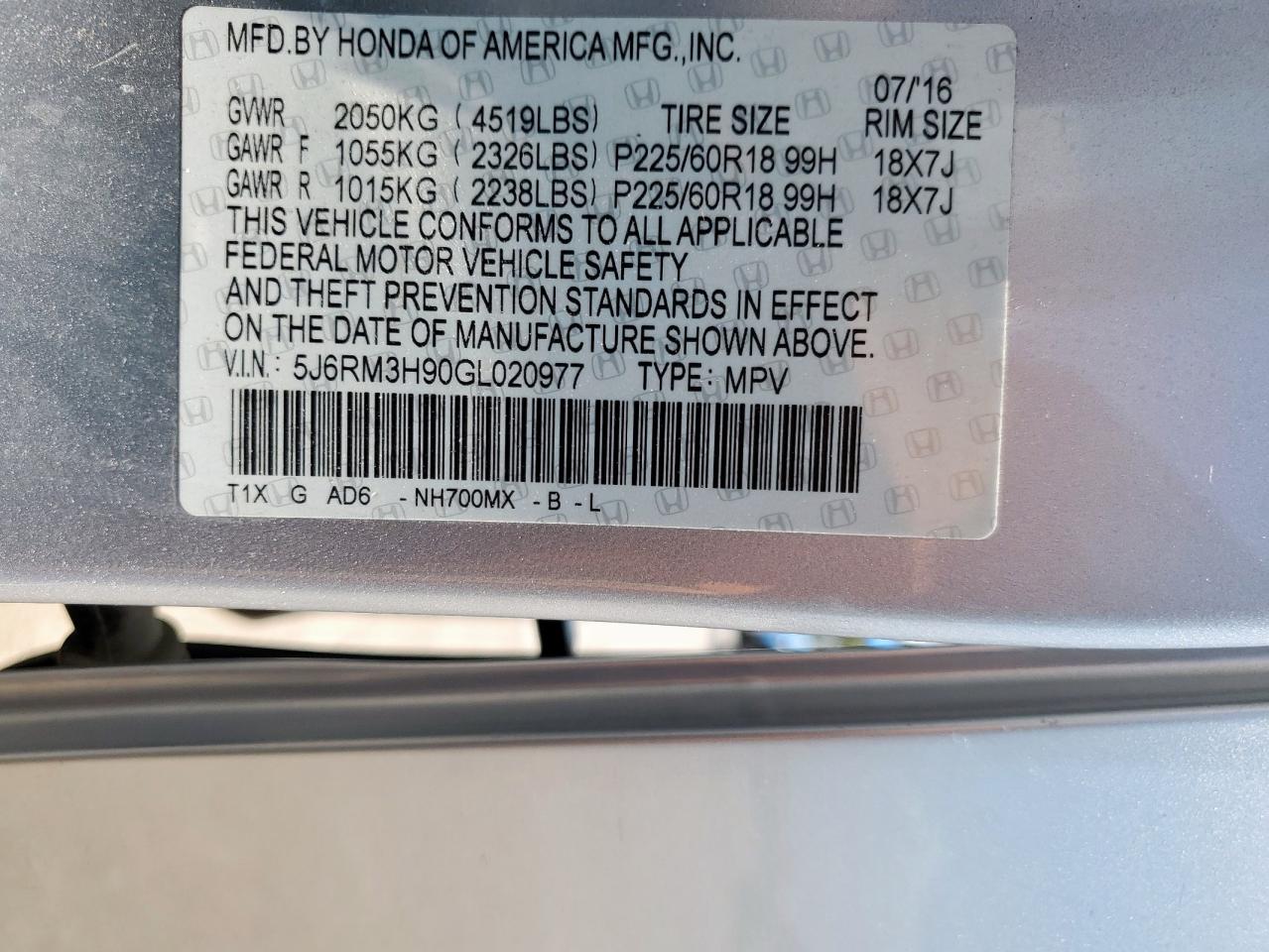 5J6RM3H90GL020977 -