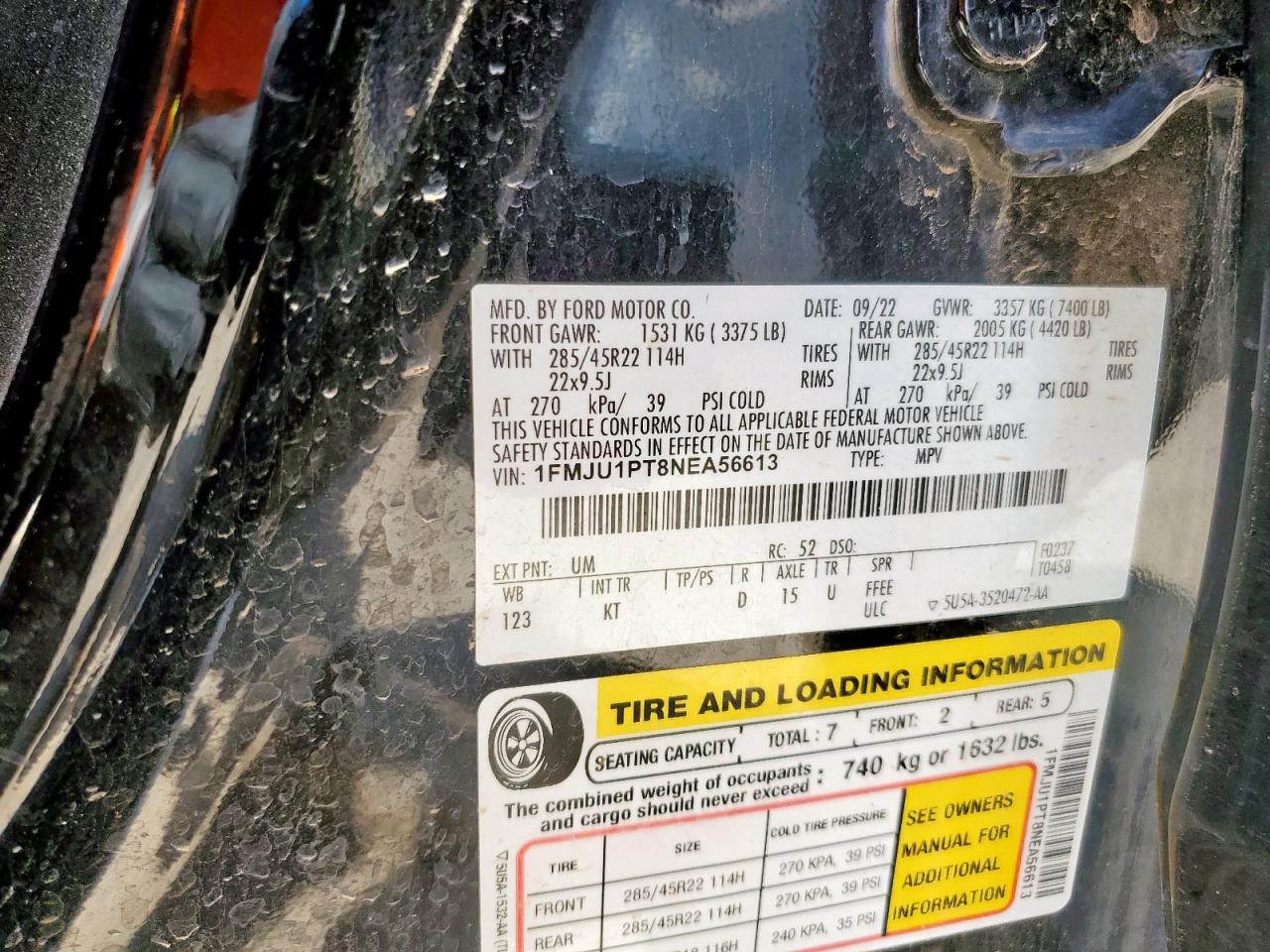 Машина оснащена 6 цилиндровым двигателем объемом 3.5 литров. Коробка передач - автомат. Тип топлива данной модели – бензин. Согласно фотоотчету с аукциона Copart пробег составляет 125 081 км. Номер кузова VIN - 1FMJU1PT8NEA56613.