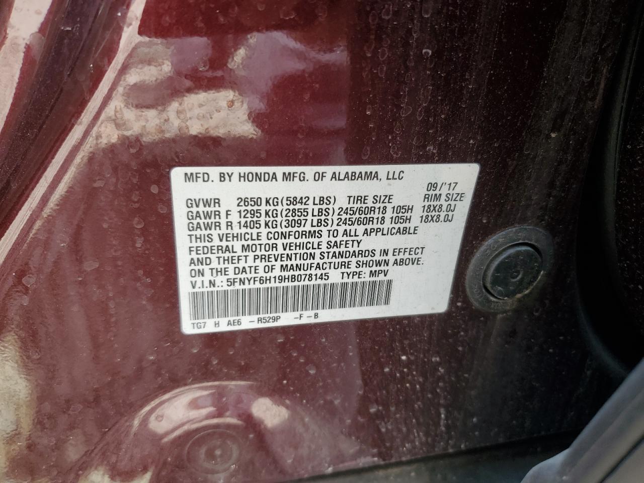 5FNYF6H19HB078145 -