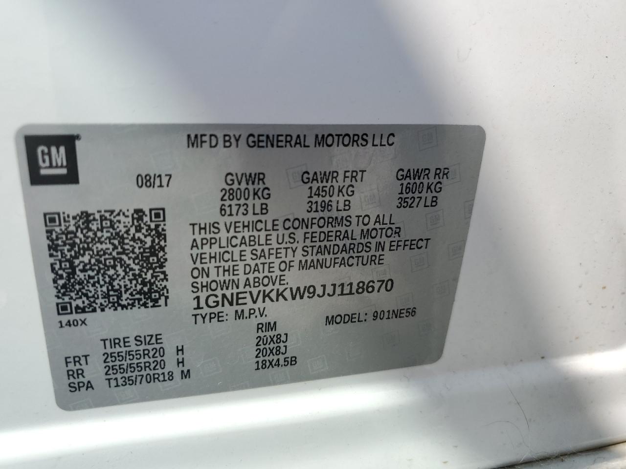 1GNEVKKW9JJ118670 -