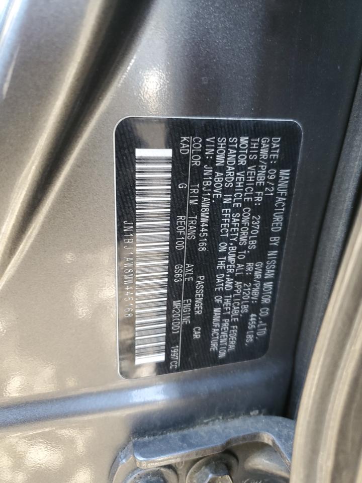 Машина оснащена 4 цилиндровым двигателем объемом 2.0 литров. Коробка передач - автомат. Тип топлива данной модели – бензин. Согласно фотоотчету с аукциона Copart пробег составляет 50 982 км. Номер кузова VIN - JN1BJ1AW8MW445168.