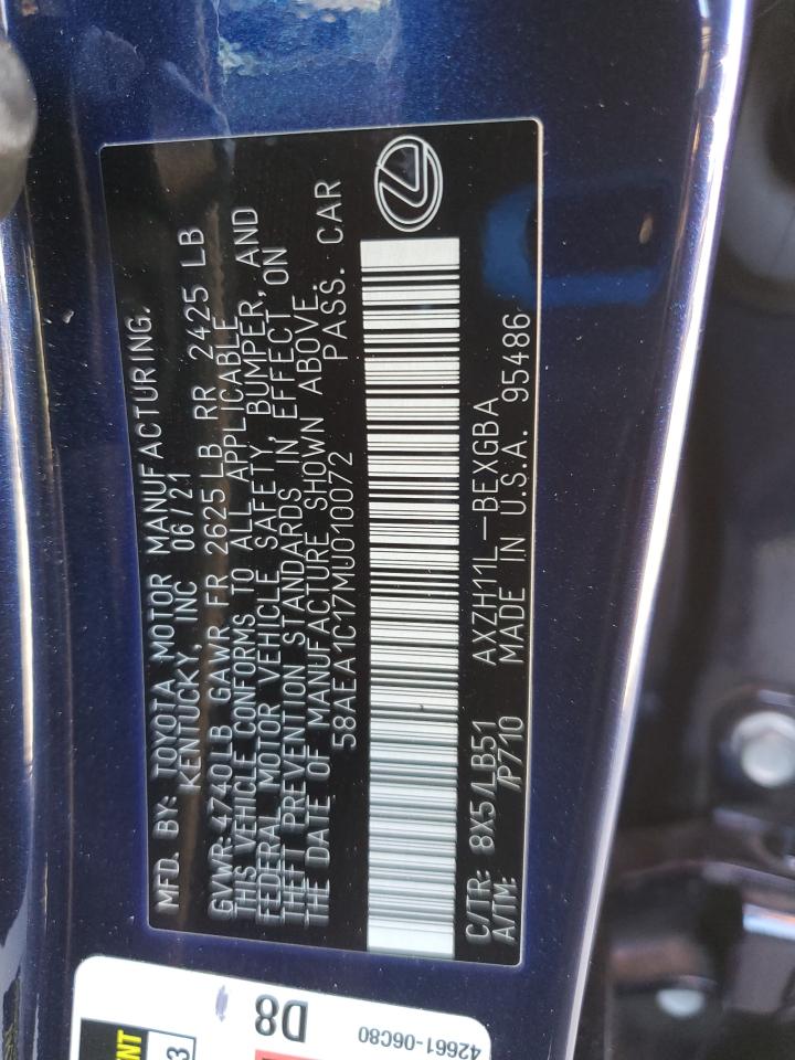 Машина оснащена 4 цилиндровым двигателем объемом 2.5 литров. Коробка передач - автомат. Тип топлива данной модели – гибрид. Согласно фотоотчету с аукциона Copart пробег составляет 42 562 км. Номер кузова VIN - 58AEA1C17MU010072.