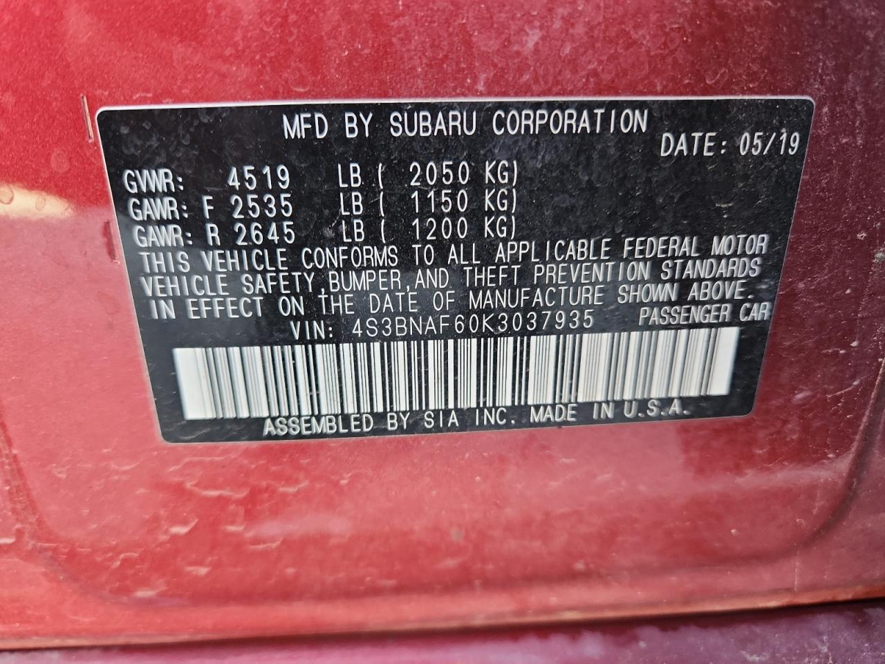 4S3BNAF60K3037935 -