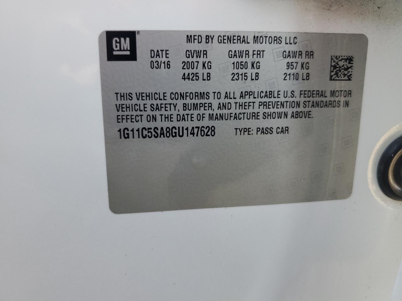 Машина оснащена 4 цилиндровым двигателем объемом 2.5 литров. Коробка передач - автомат. Тип топлива данной модели – бензин. Согласно фотоотчету с аукциона Copart пробег составляет 98 035 км. Номер кузова VIN - 1G11C5SA8GU147628.