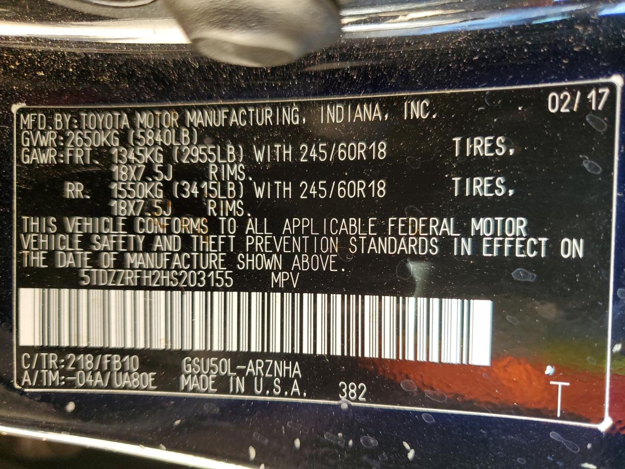 5TDZZRFH2HS203155 -