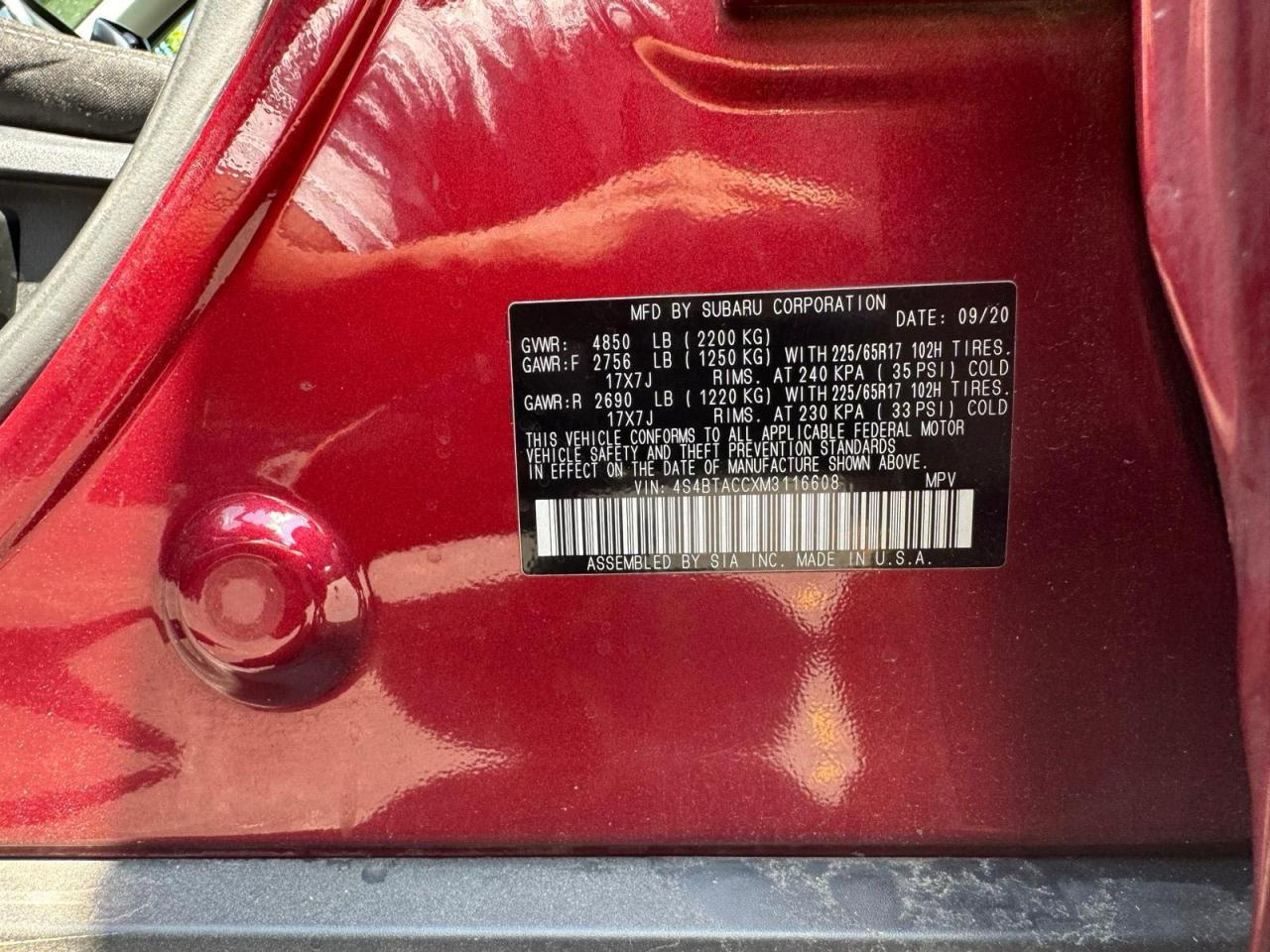 2021 SUBARU OUTBACK PREMIUM 4S4BTACCXM3116608
